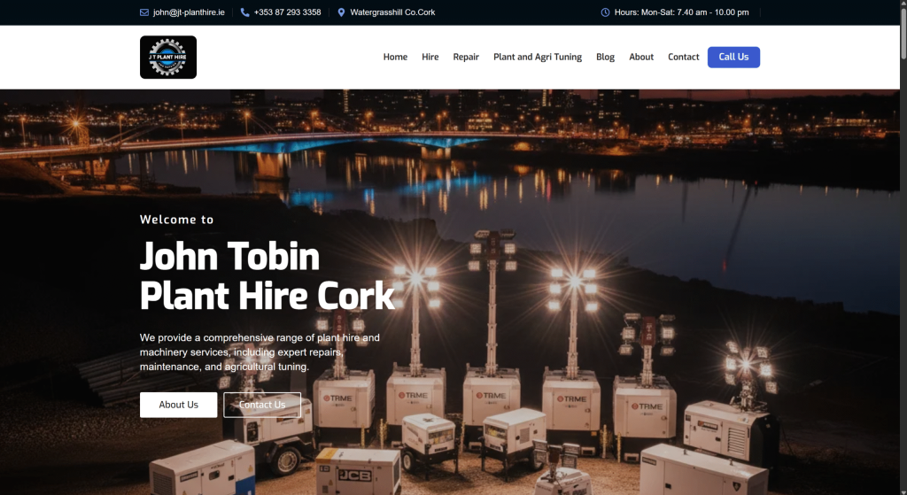 J.T Plant Hire Website Development Cork